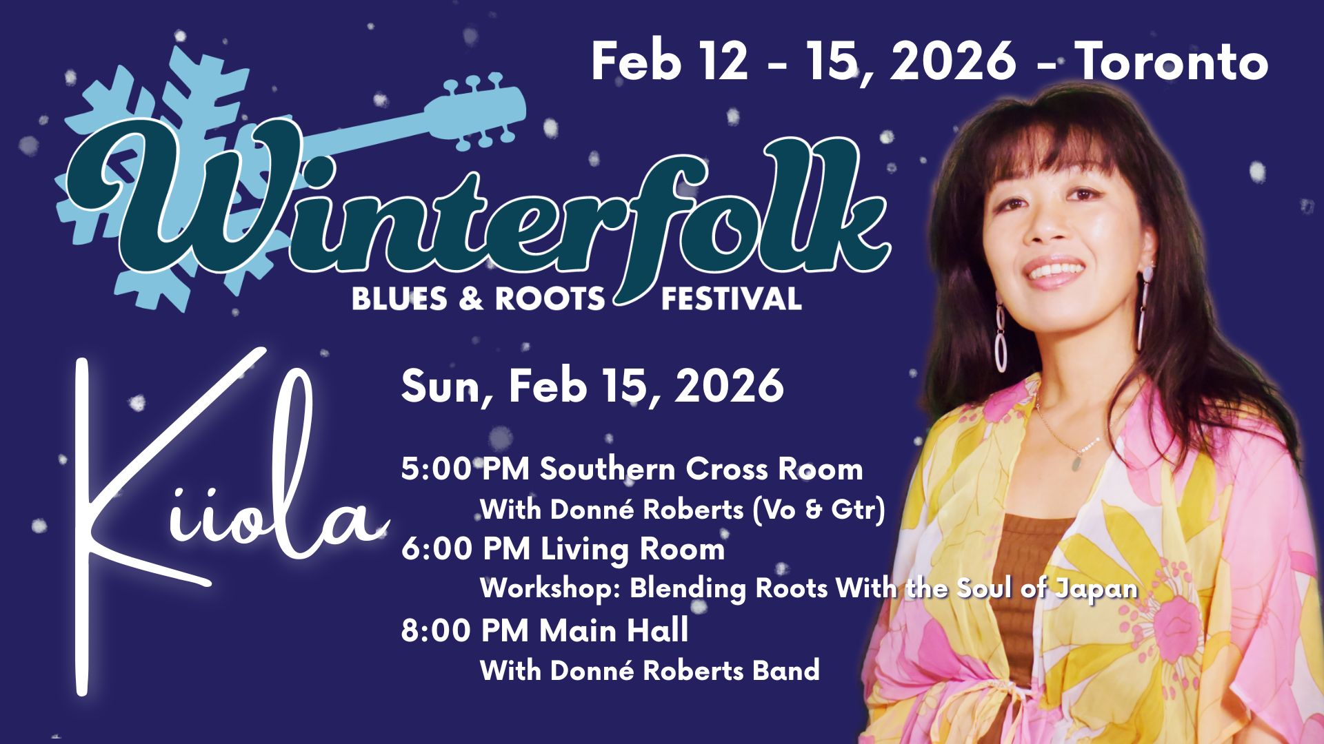 Kiiola is coming back to the Winterfolk Blues & Roots Festival! In her first solo set, she'll blend her Japanese roots with folk, pop, and jazz to create a hopeful sound that reminds listeners music is the universal language of greeting. Tickets are available at Eventbrite